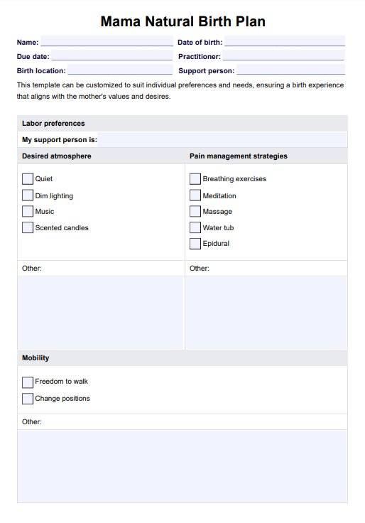 Mama Natural Birth Plan Templates are used during pregnancy to prepare for childbirth.