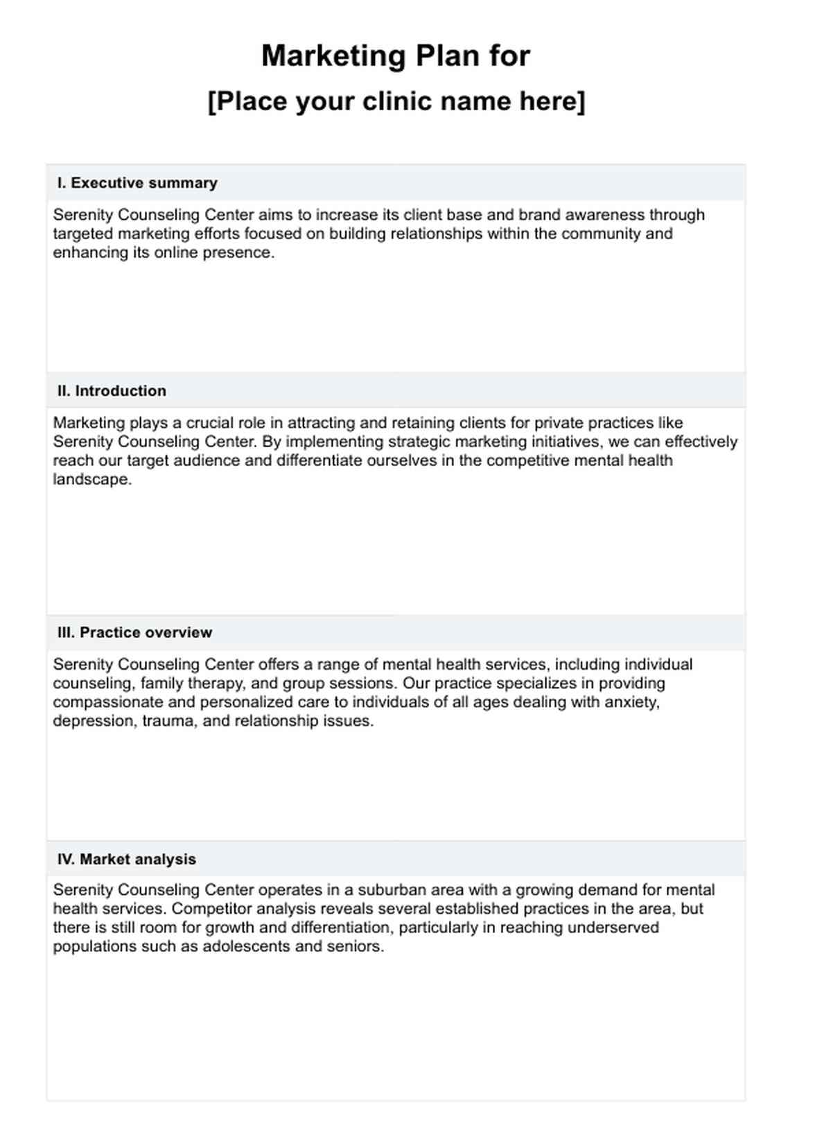 Marketing Plan for Private Practice Template