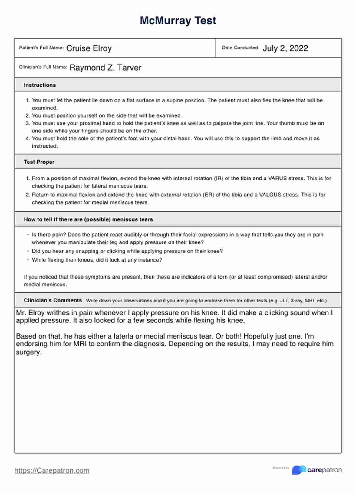 If you have a patient complaining about knee pains, swelling, or locking, administer the McMurray Test to gauge their knees and see if they might be suffering from a meniscal injury.