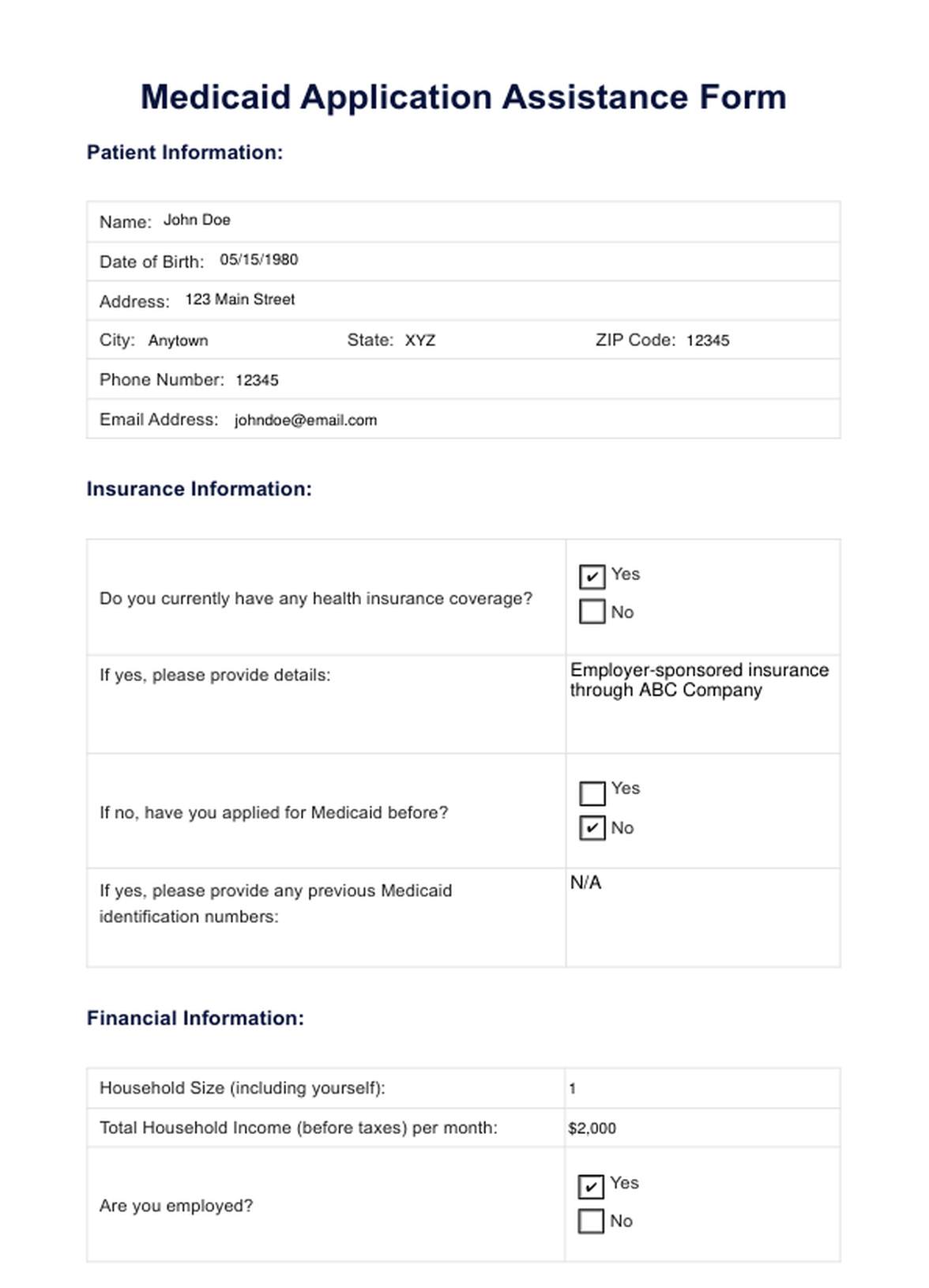 Medicaid Application Form Template