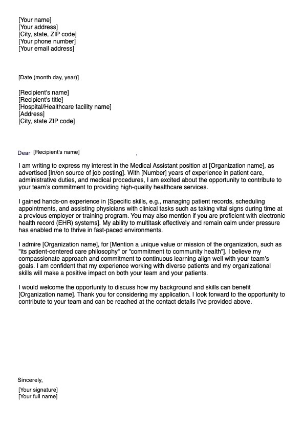 Medical Assistant Cover Letter Template