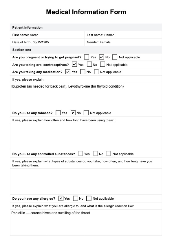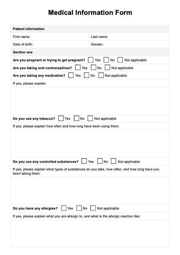 A medical information form template designed to improve data accuracy and enhance the quality of care.