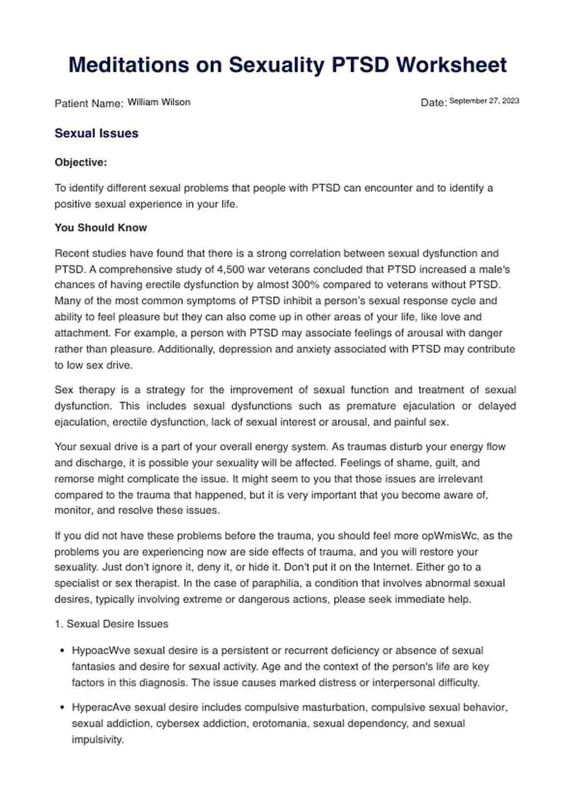 Explore the power of the Meditations on Sexuality PTSD Worksheet to address trauma-related challenges and promote healing. Access the free template now.
