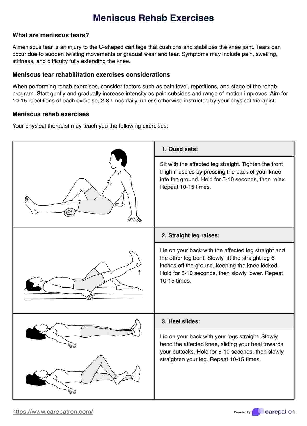 Meniscus Rehab Exercises Handout Template
