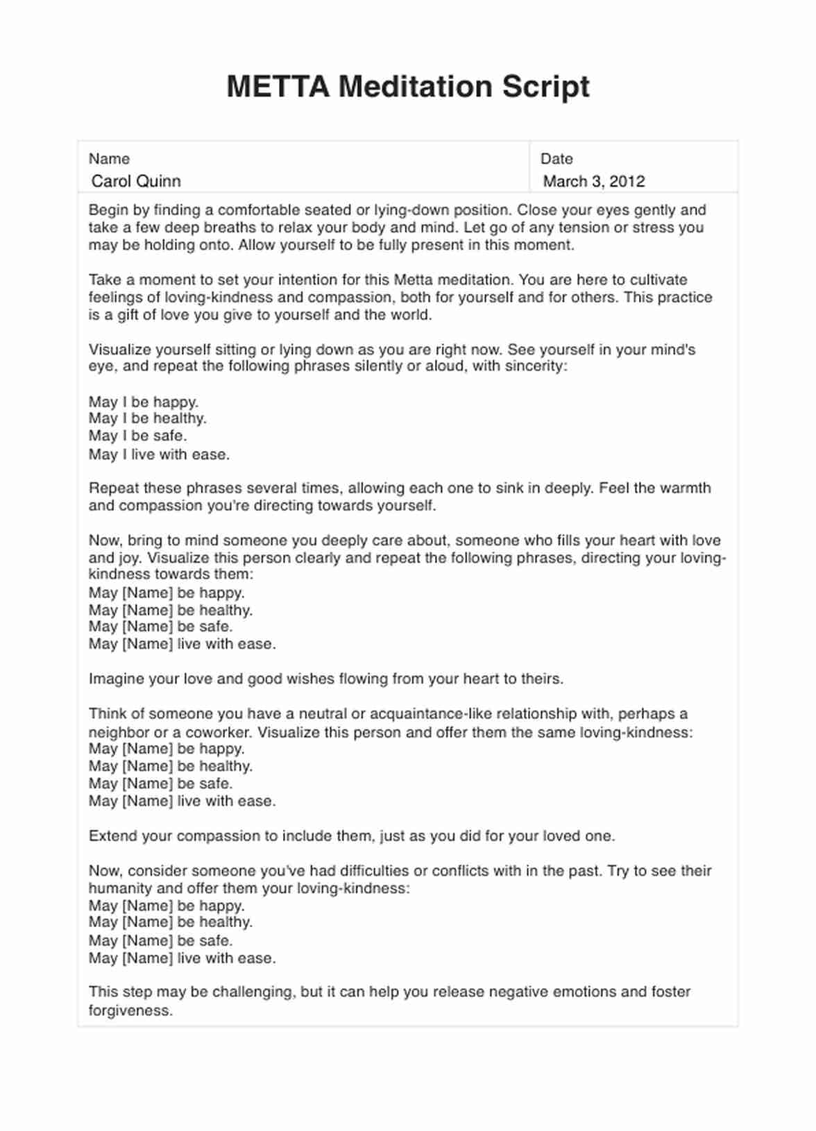 Download a free METTA Meditation Script to help individuals cultivate loving-kindness, compassion, and well-being. Get our PDF template here.