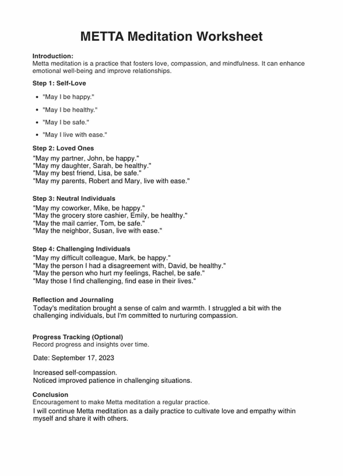 Enhance your well-being with METTA Meditation Worksheets. Cultivate love, compassion, and mindfulness with this structured resource.