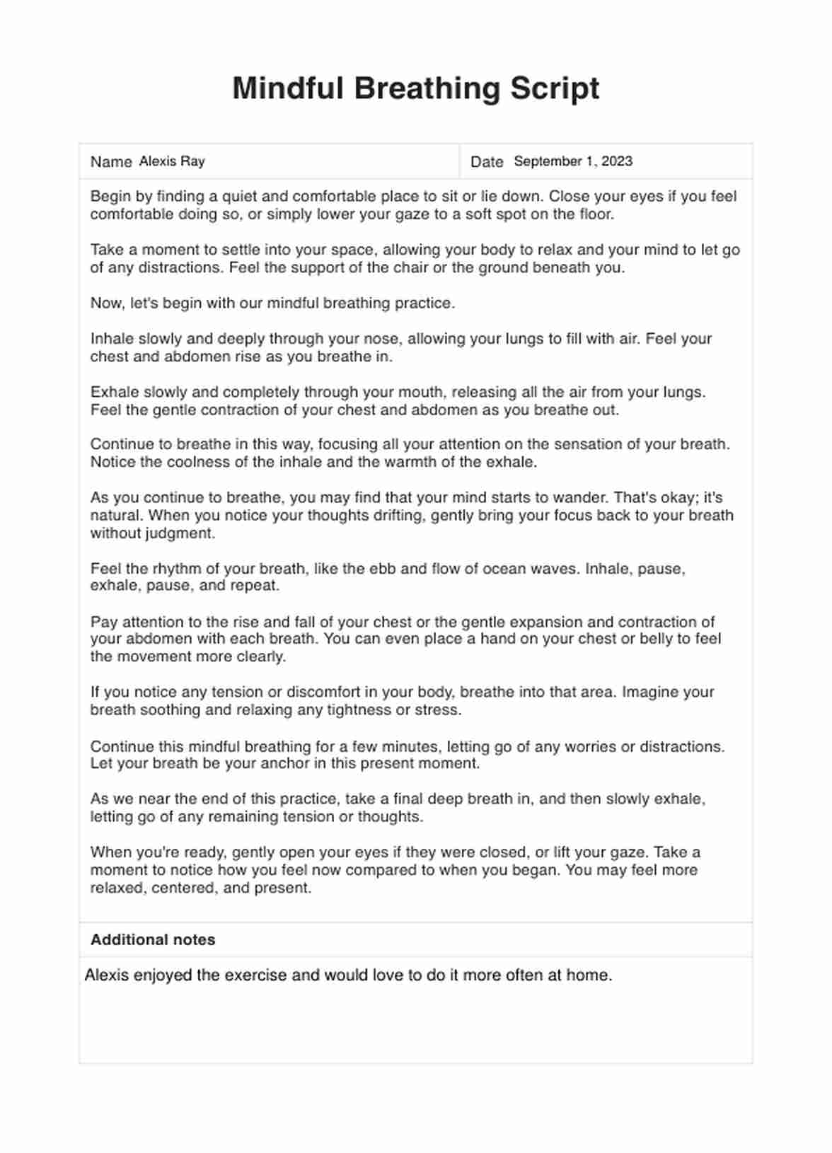 Mindful Breathing Scripts Template