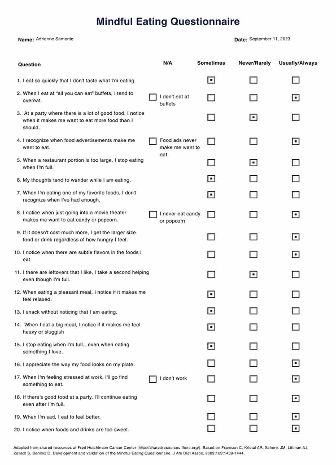 Mindful Eating Questionnaire Template