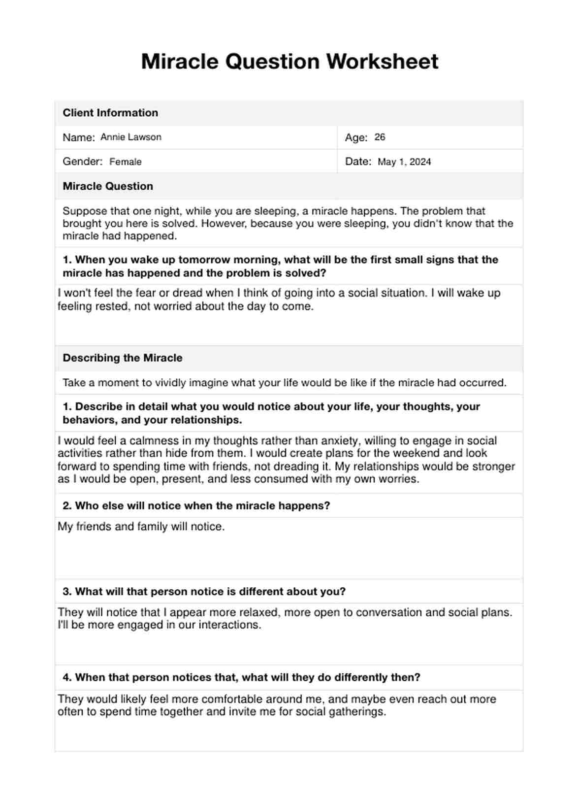 Miracle Question Worksheet Template