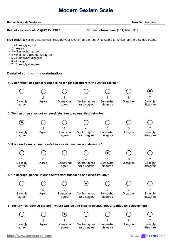 Download Carepatron's Modern Sexism Scale (MSS) PDF and learn more about measuring gender bias and attitudes with this useful tool.