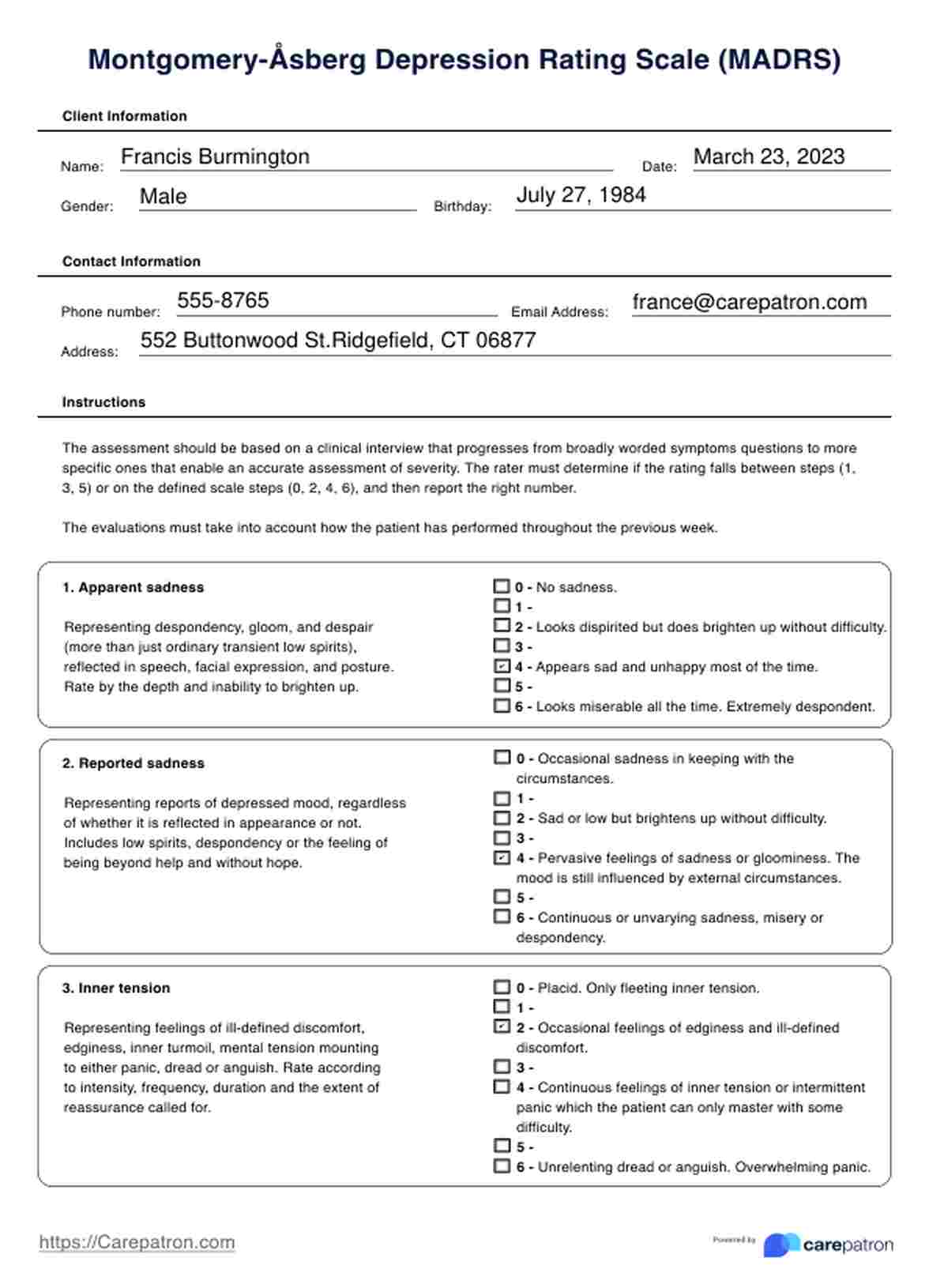 Use this Montgomery–Åsberg Depression Rating Scale to evaluate the depressive symptoms in your client and develop an effective treatment plan.