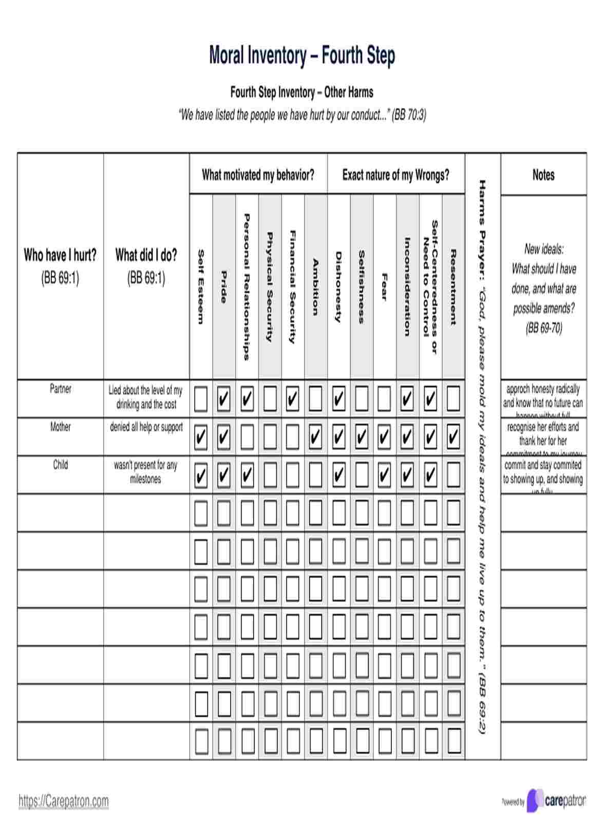 A Moral Inventory is a reflective tool that helps individuals examine their values, actions, and beliefs. Download a free Moral Inventory template and example here.
