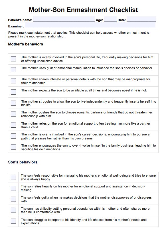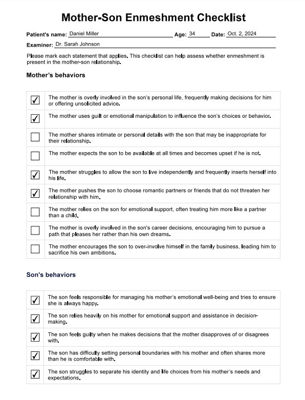 Mother-Son Enmeshment Checklist Template