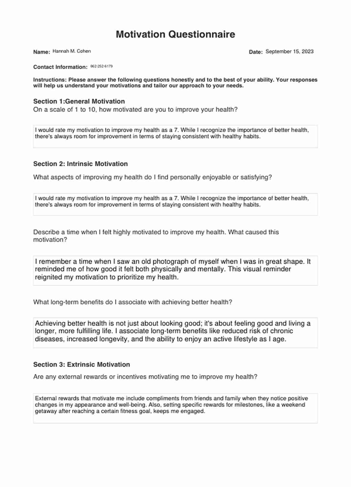 Motivation Questionnaires Template