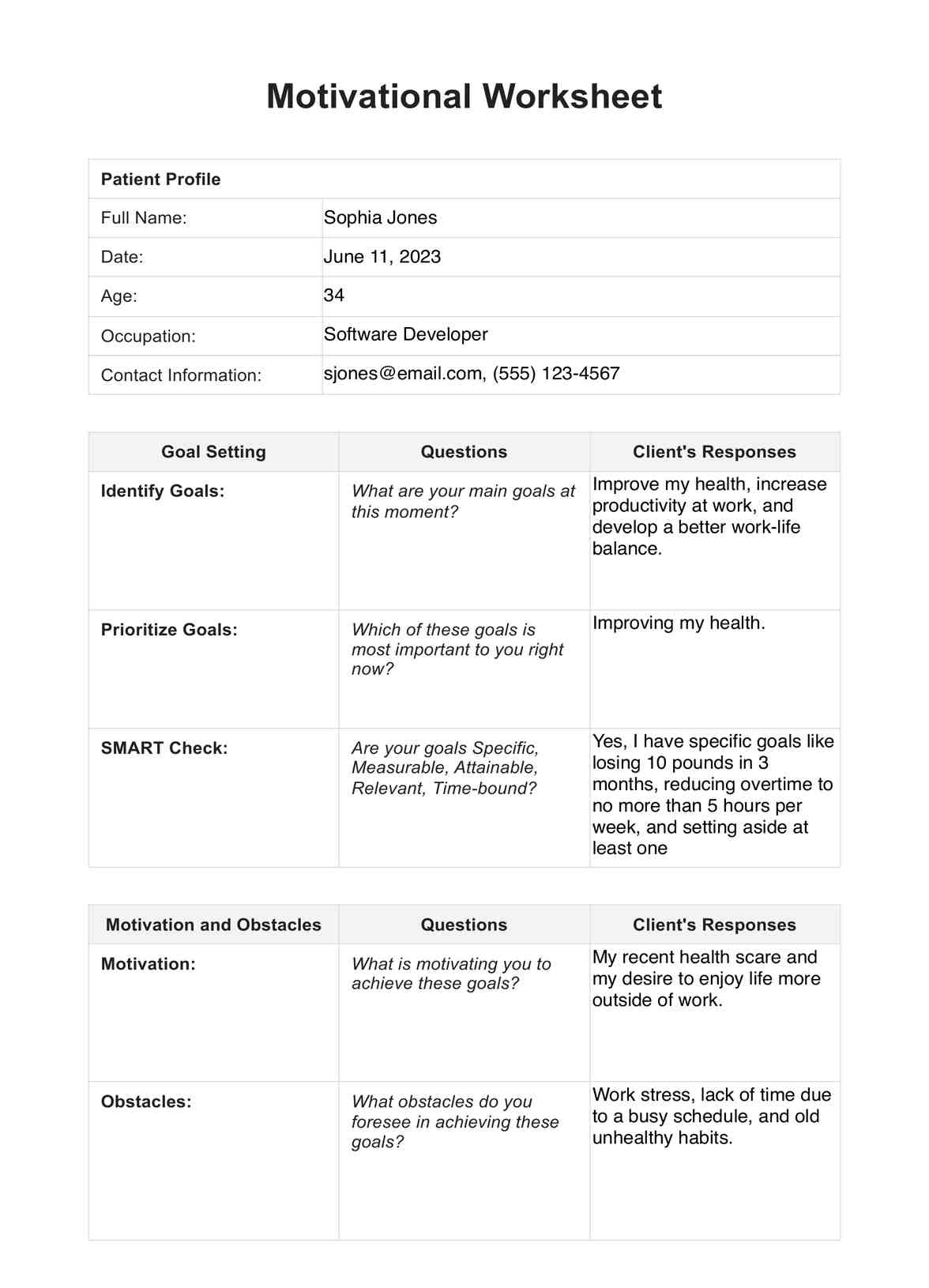 Boost your motivation and reach your goals with our comprehensive Motivational Worksheet. Download for free and become motivated in no time at all!