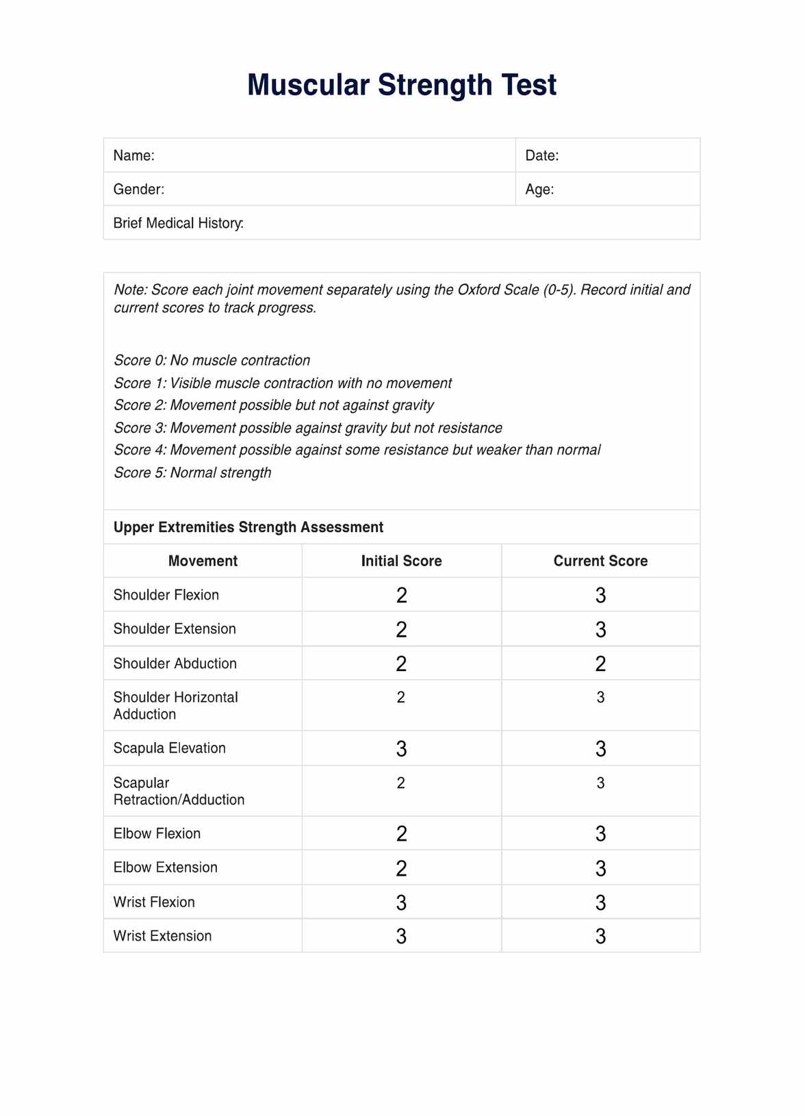 Explore the Muscular Strength Test template, a comprehensive tool for healthcare professionals to effectively assess and enhance patient muscle strength.