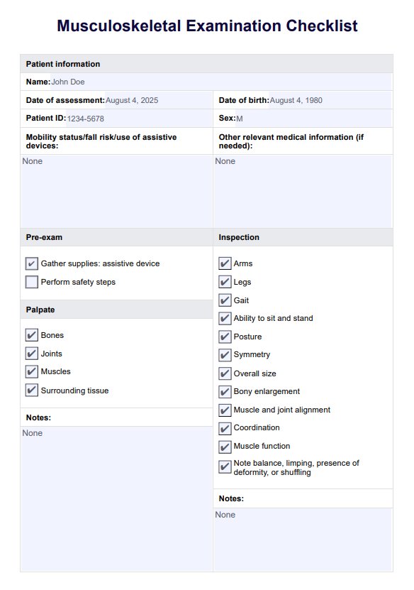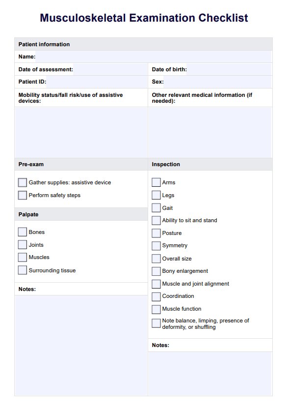 Ensure you don't miss a step when conducting a musculoskeletal assessment by following a guide like our free Musculoskeletal Examination Checklist.