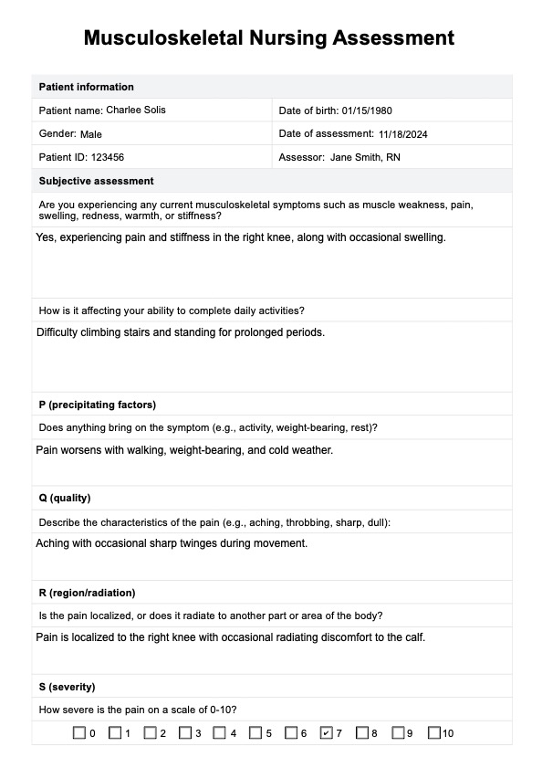 Learn about the important aspects and key components when assessing patients through Carepatron's Musculoskeletal Nursing Assessment PDF.
