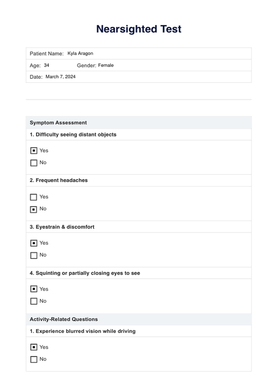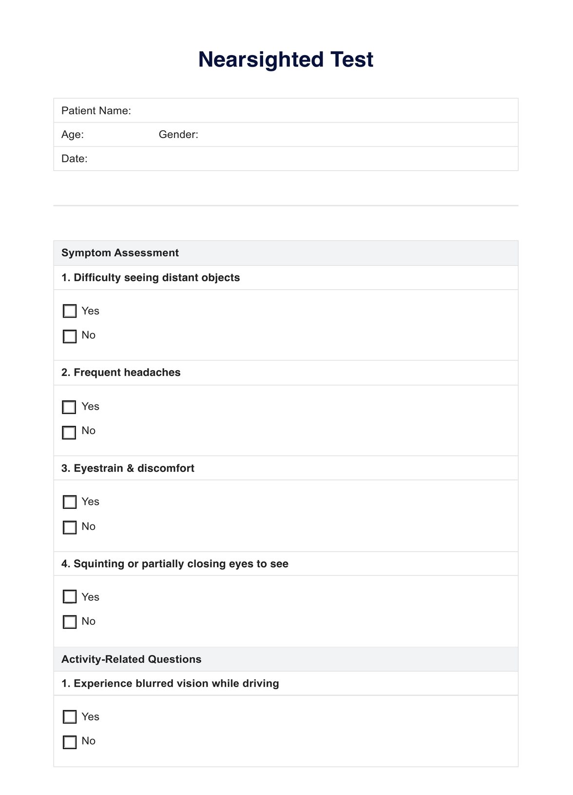 Learn how to conduct a nearsighted test and document the results using this free resource. Access and download the free PDF template here.