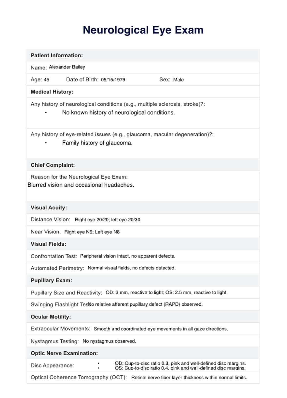 A neuro eye exam is a comprehensive assessment of the visual system to diagnose and manage neurological conditions. Download Carepatron's neuro eye exam PDF to learn more about it.