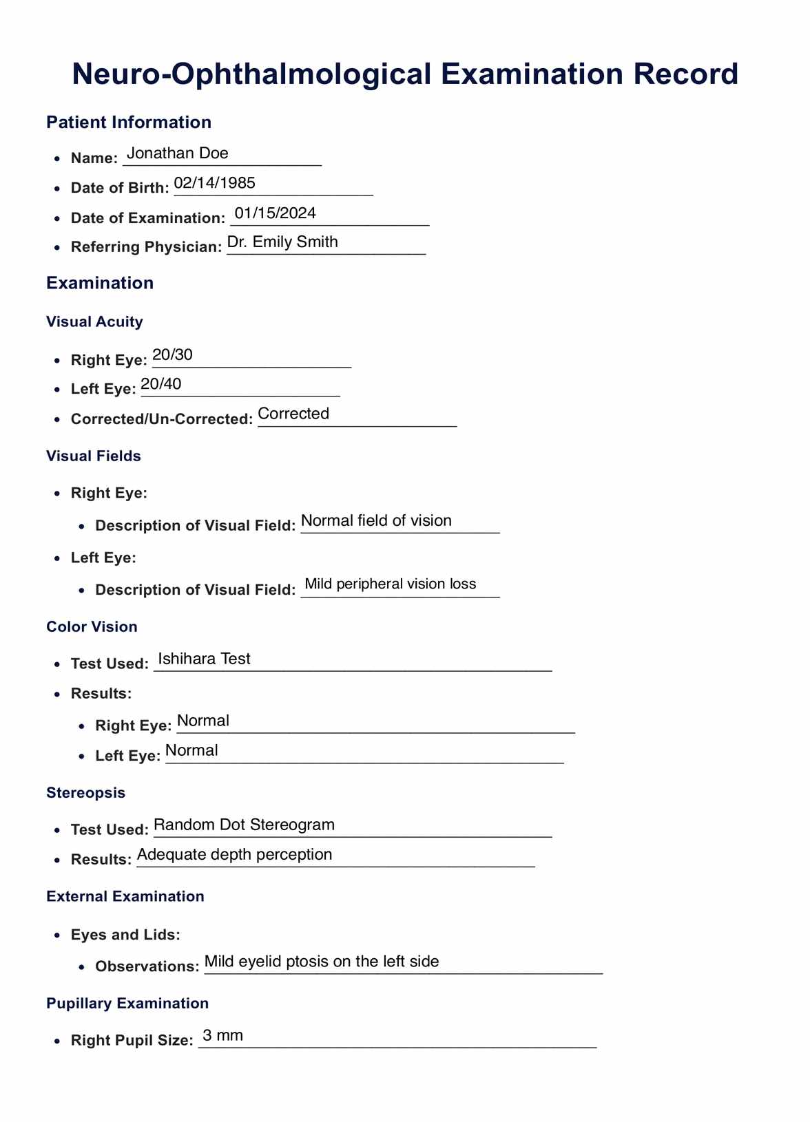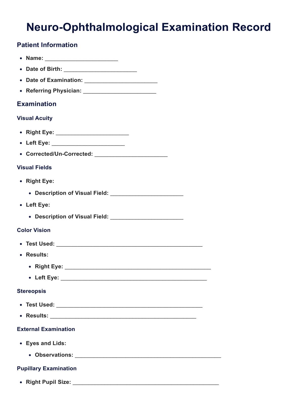 A neuro-ophthalmological assessment for visual loss includes evaluating the best corrected visual acuity for distance and central vision. Tests like fundus examination and optical coherence tomography (OCT) assess the health of the optic nerves and macula. The assessment may include pupil testing, confrontation visual fields, and a detailed review of any refractive error. The neuro-ophthalmologist aims to diagnose macular degeneration, optic neuritis, or central serous retinopathy.