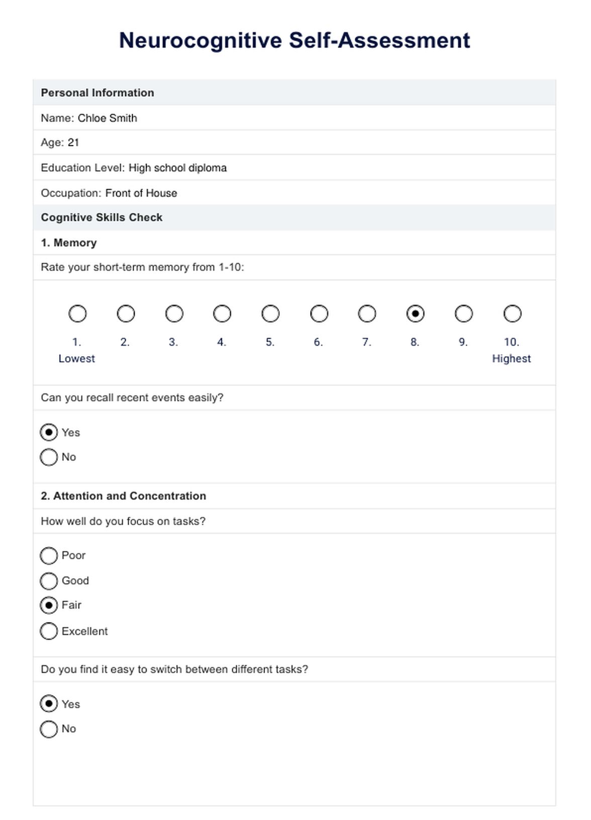 Neurocognitive Test Template