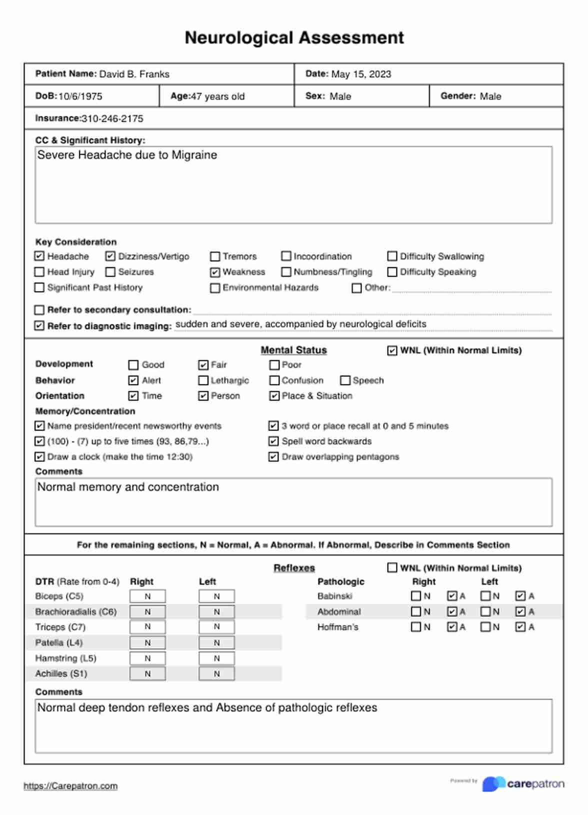 Neurological assessments are typically performed by healthcare professionals with specialized training in neurology, such as neurologists, neurosurgeons, and specialized nurses. However, other healthcare providers, including primary care physicians, emergency medicine physicians, rehabilitation specialists, and advanced practice providers, may also perform neurological assessments as part of their clinical practice.