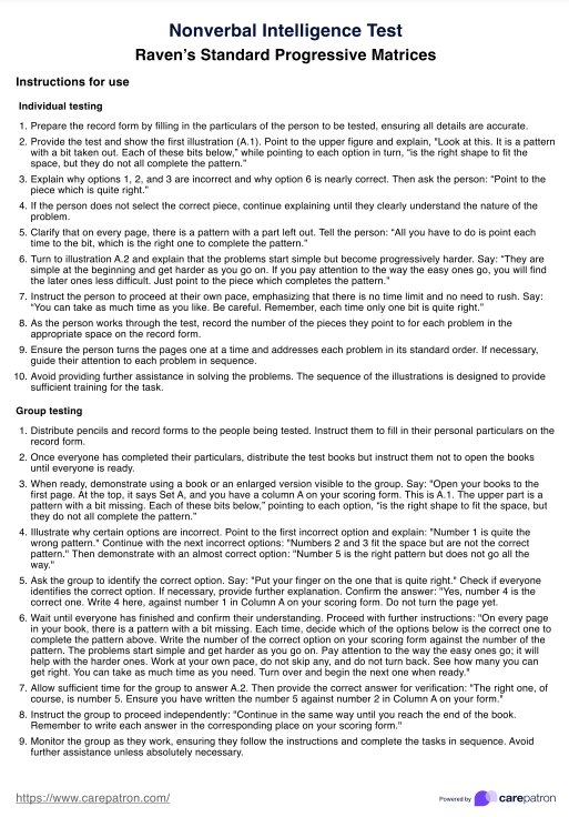 Access a free Nonverbal Intelligence Test based on Raven's Progress Standard Matrices. Download the PDF now.