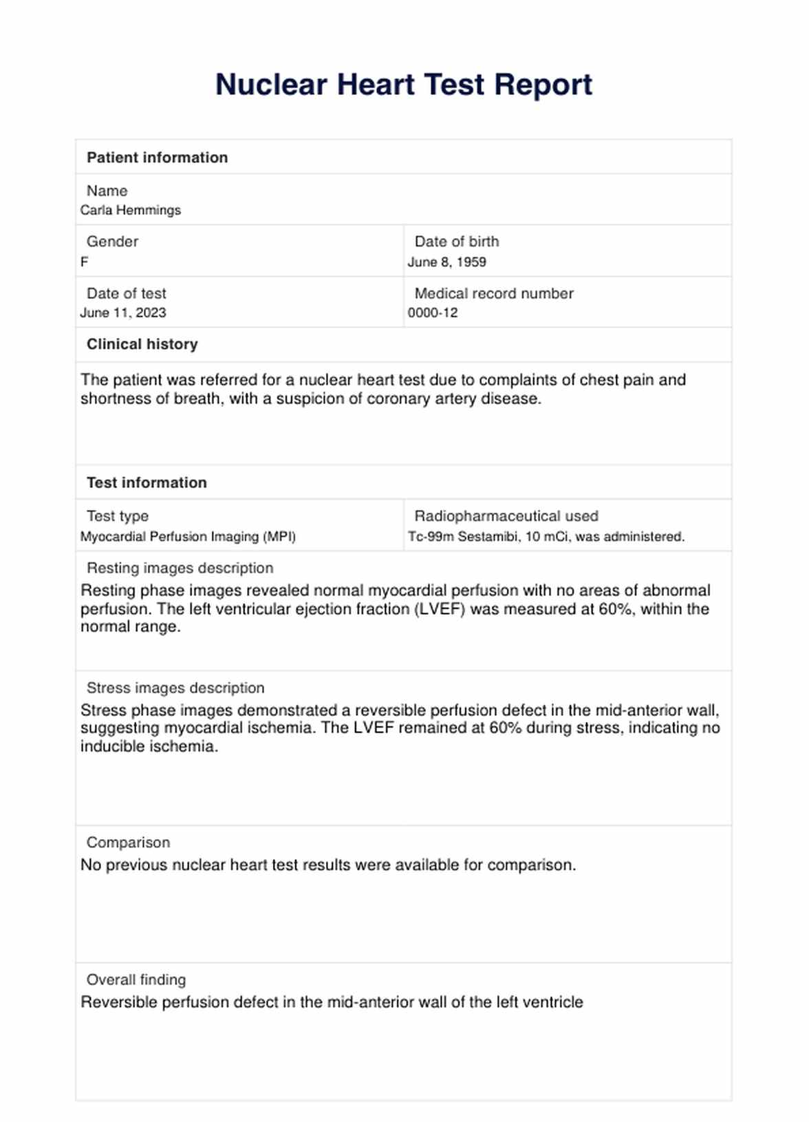 Get access to a free Nuclear Heart Test Report template. Document your patient results with a user-friendly PDF template.