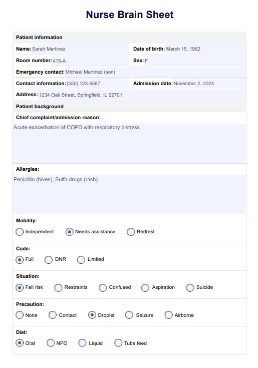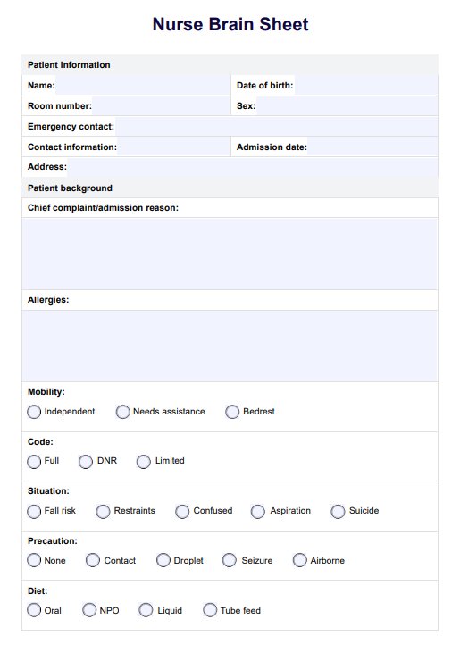 Optimize patient care with our Nurse Brain Sheet Template. Streamline communication and boost efficiency in healthcare settings.