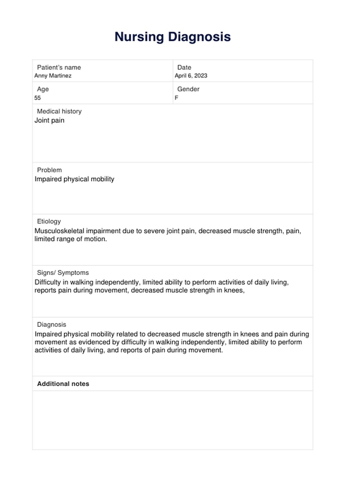 Access a free Nursing Diagnosis Template and explore how to document patient information for adequate care and treatment.