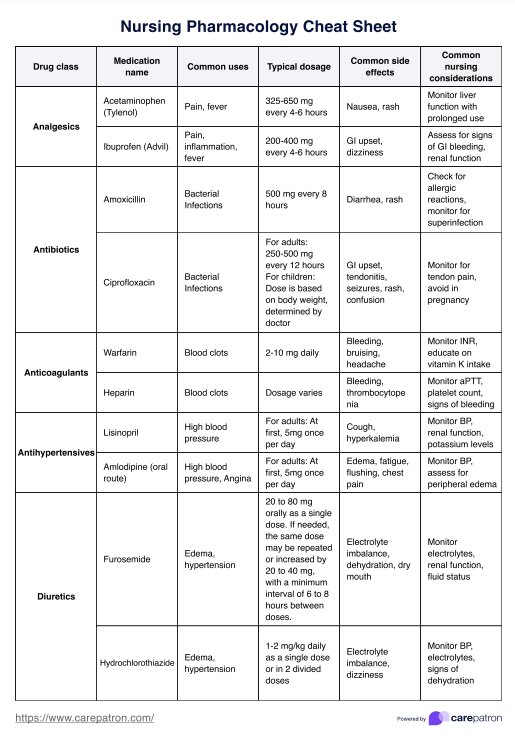 Access our free Nursing Pharmacology Cheat Sheet for streamlined medication management. Enhance care with Carepatron's free resource.