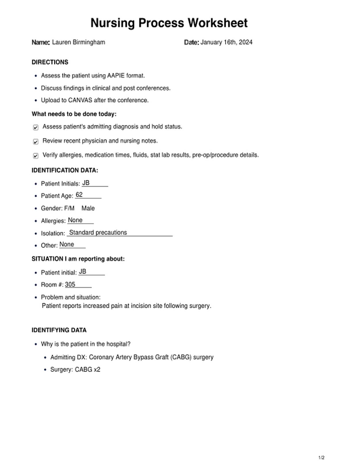 Optimize patient care with our Nursing Process Worksheet, enhancing healthcare delivery through systematic assessment, diagnosis, planning, and evaluation.
