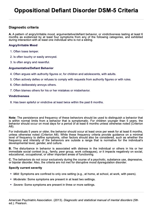 Access an Oppositional Defiant Disorder DSM-5 Criteria PDF as a reference tool in the clinical process.