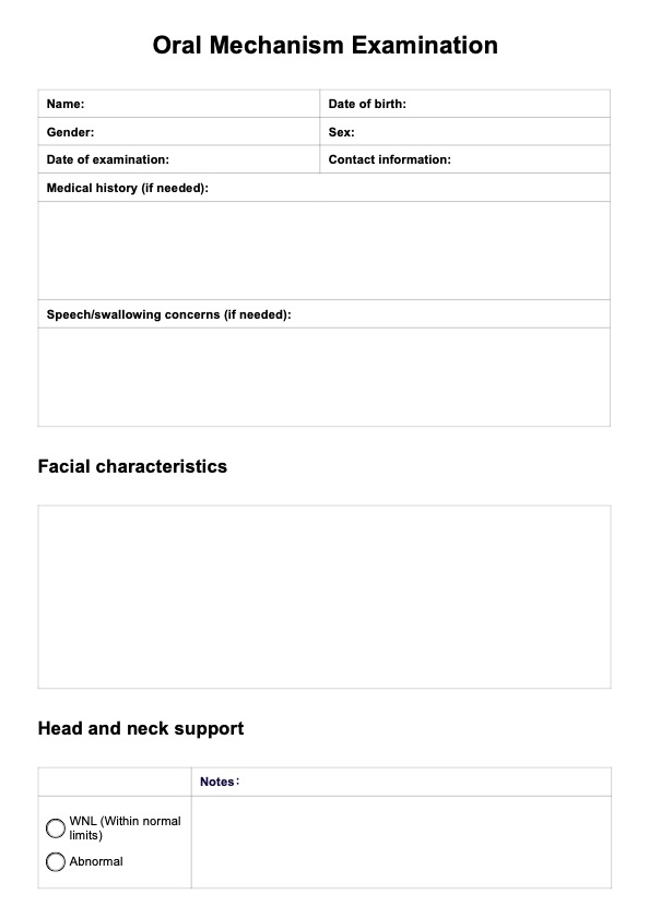 Unlock precise diagnosis & personalized treatment with our Oral Mechanism Examination—a comprehensive assessment for speech & swallowing concerns. Download now!