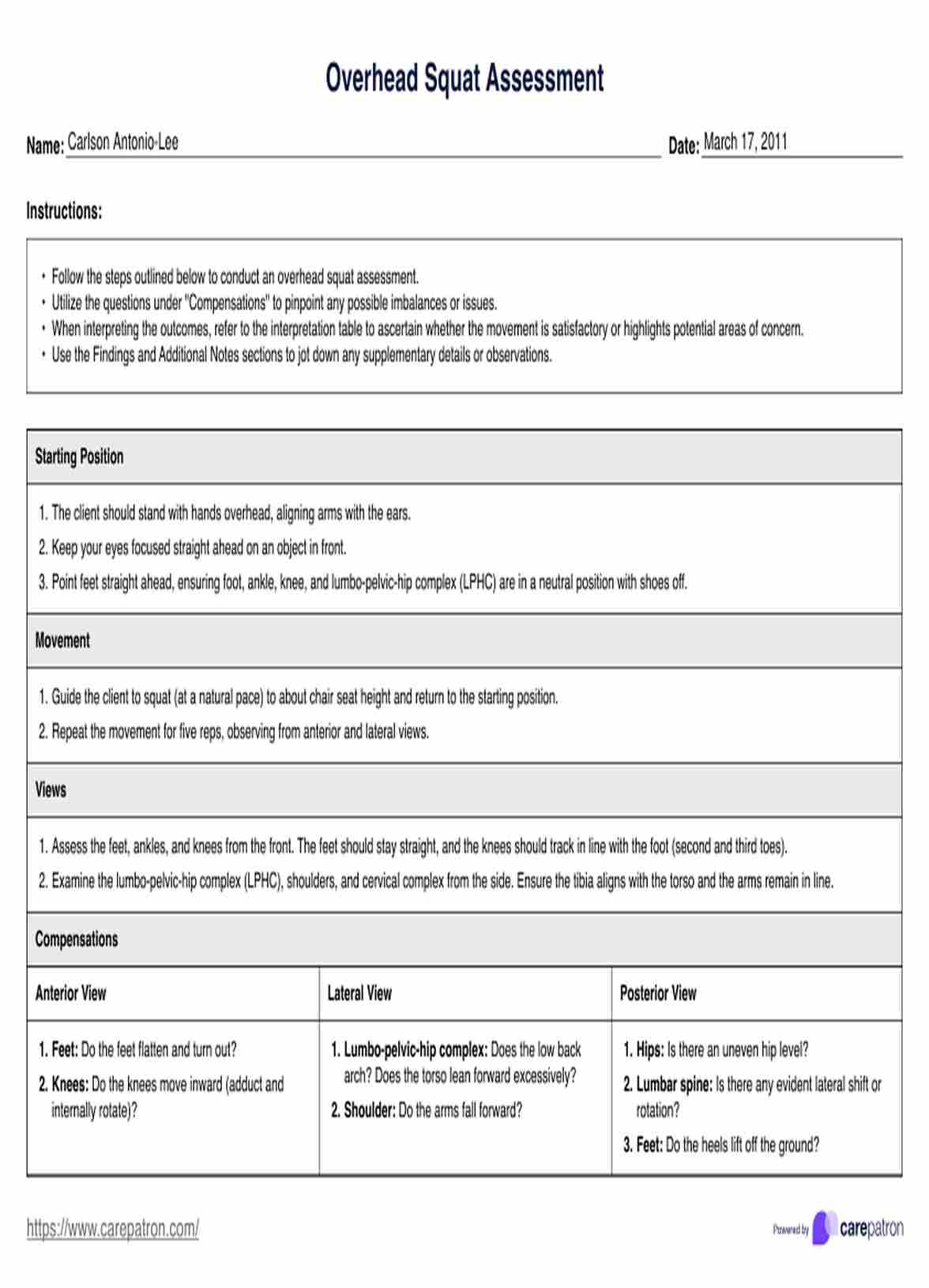 Get access to a free Overhead Squat Assessment template. Learn how to perform this test and interpret the results.