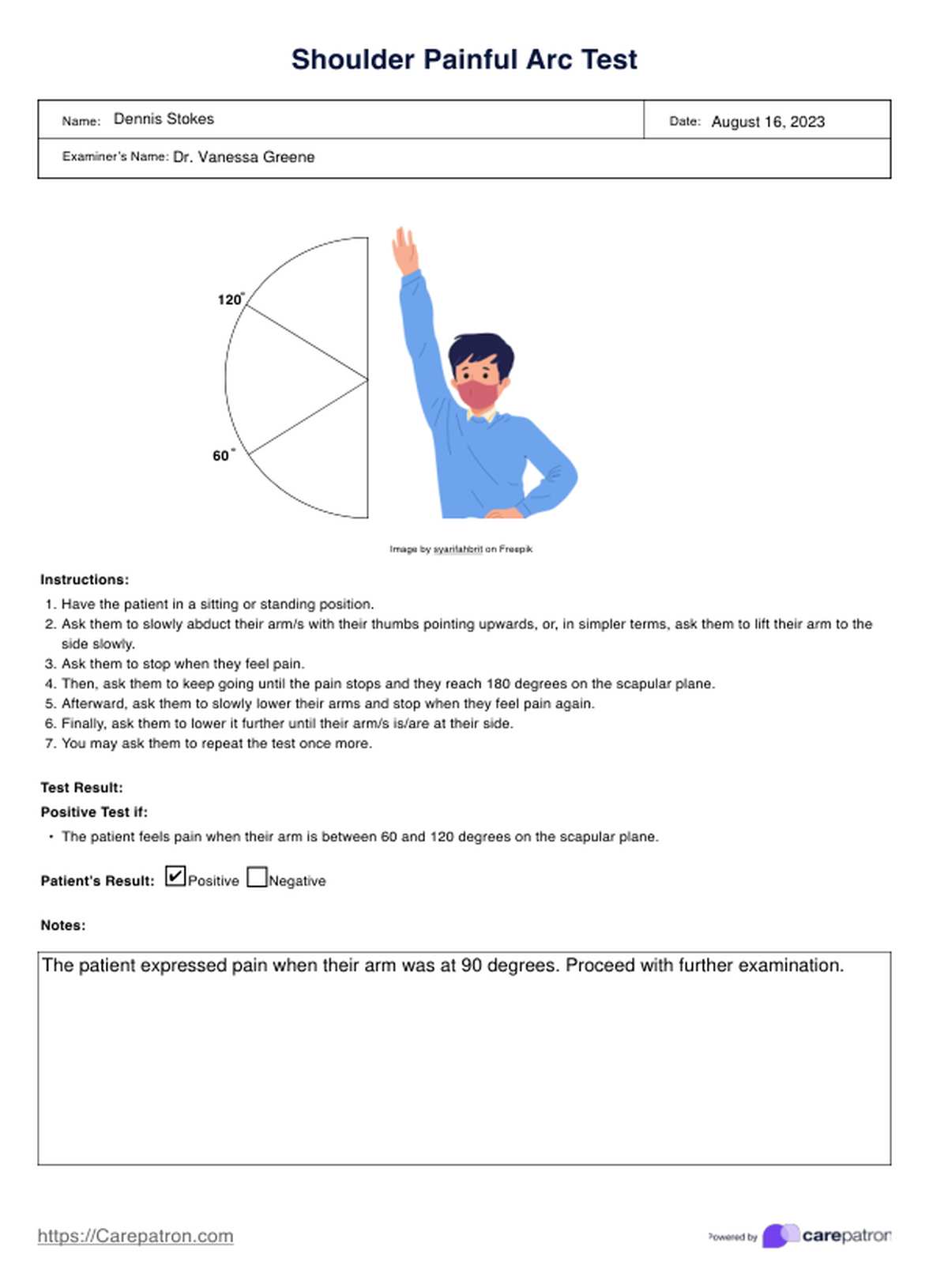 Identify with the painful arc test if your patient has subacromial impingement syndrome. Click here for more information and a free template.