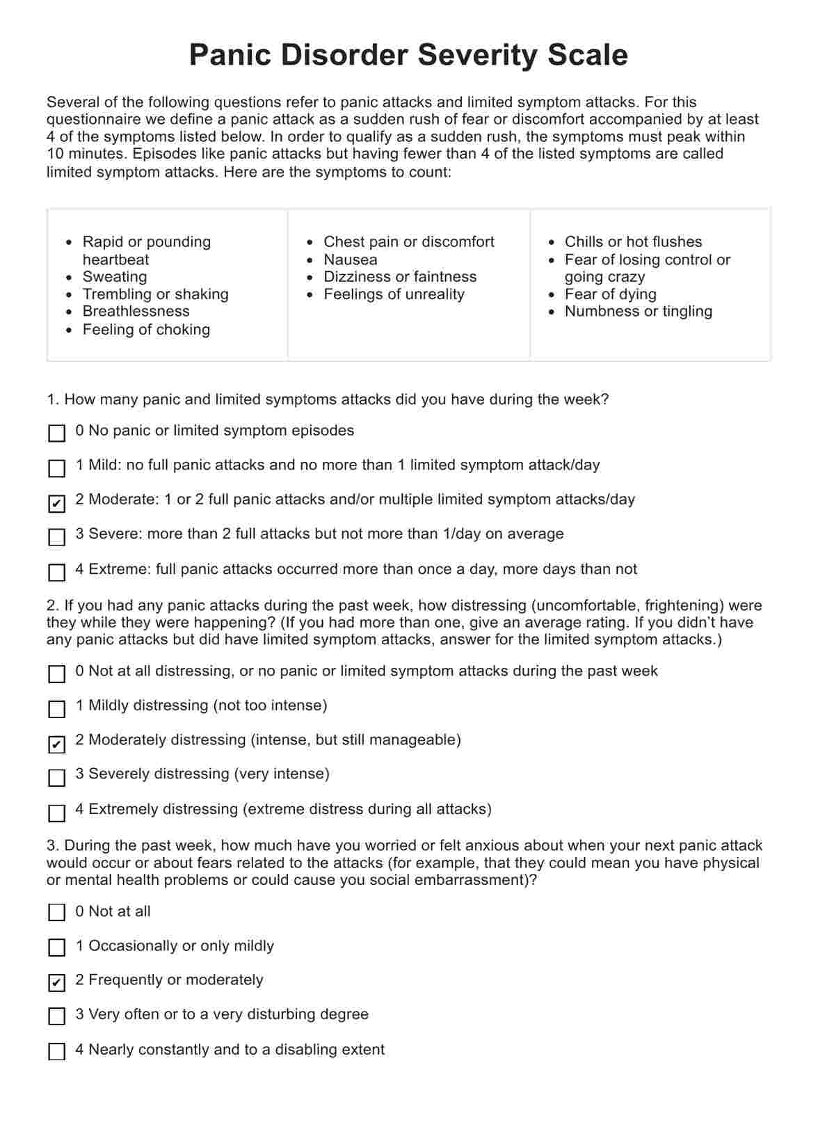 Panic Disorder Severity Scale Template