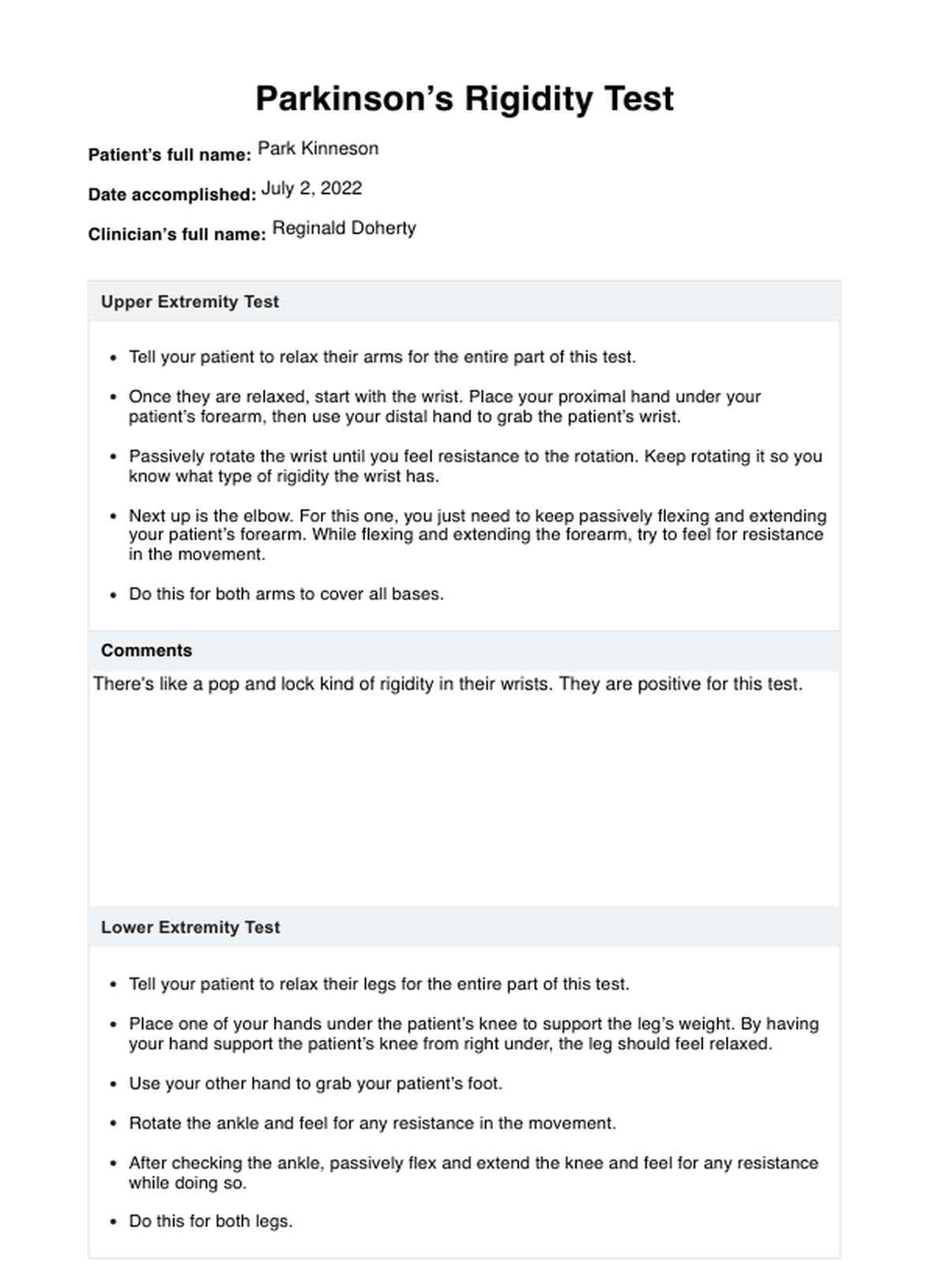 Parkinson’s Rigidity Test Template