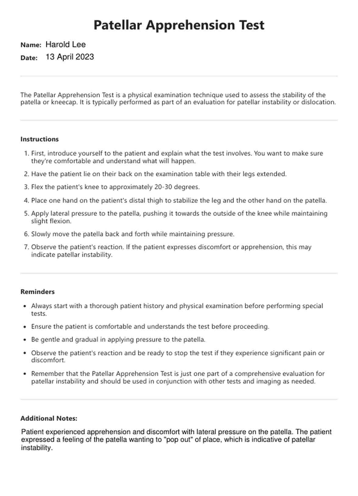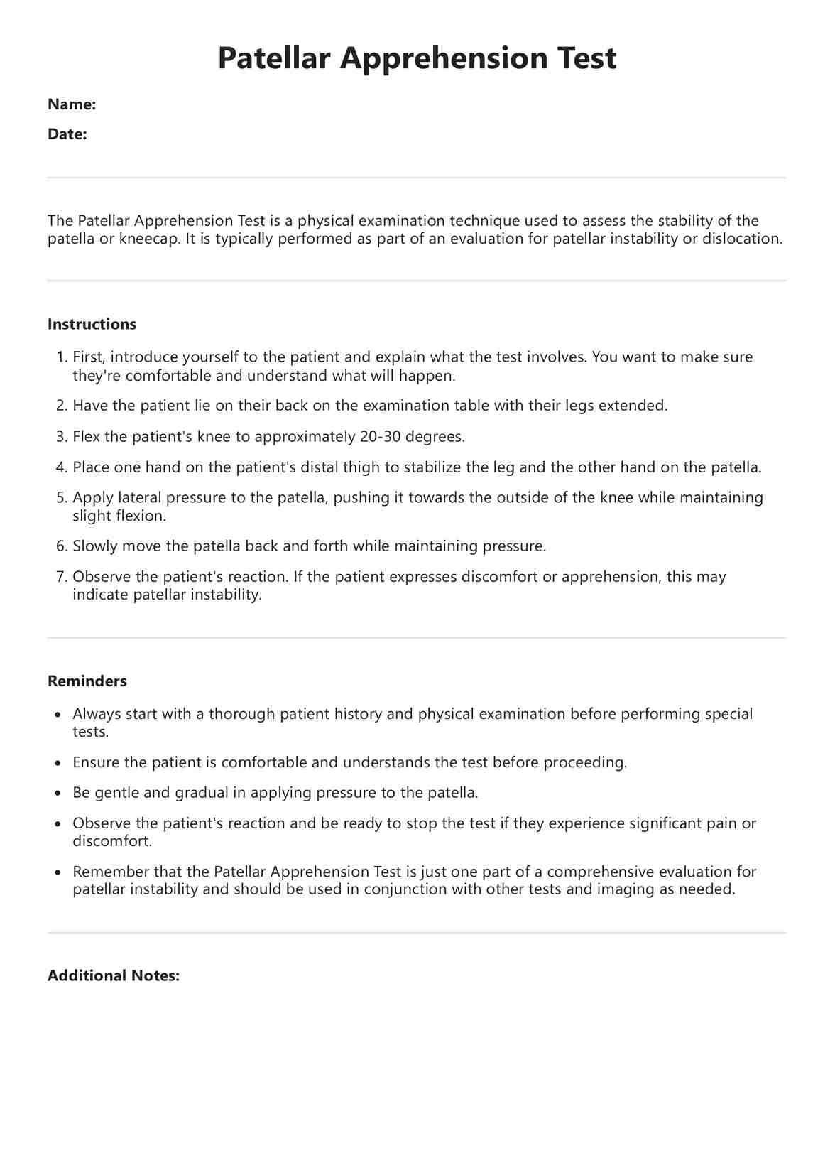 Learn how to conduct a Patellar Apprehension Test and download our free PDF example. Get the steps, procedure, and assessment criteria of this knee exam.