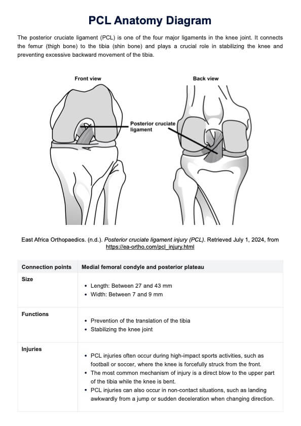 Have a visual representation of the anatomy of the posterior cruciate ligament for clinical or educational purposes by downloading our PCL Anatomy Diagram template.