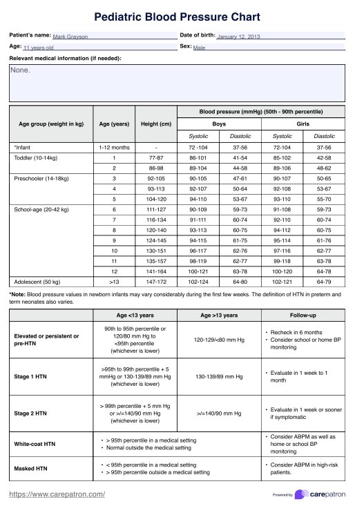 Use this Pediatric Blood Pressure Chart as a cheat sheet to monitor a pediatric patient's blood pressure!