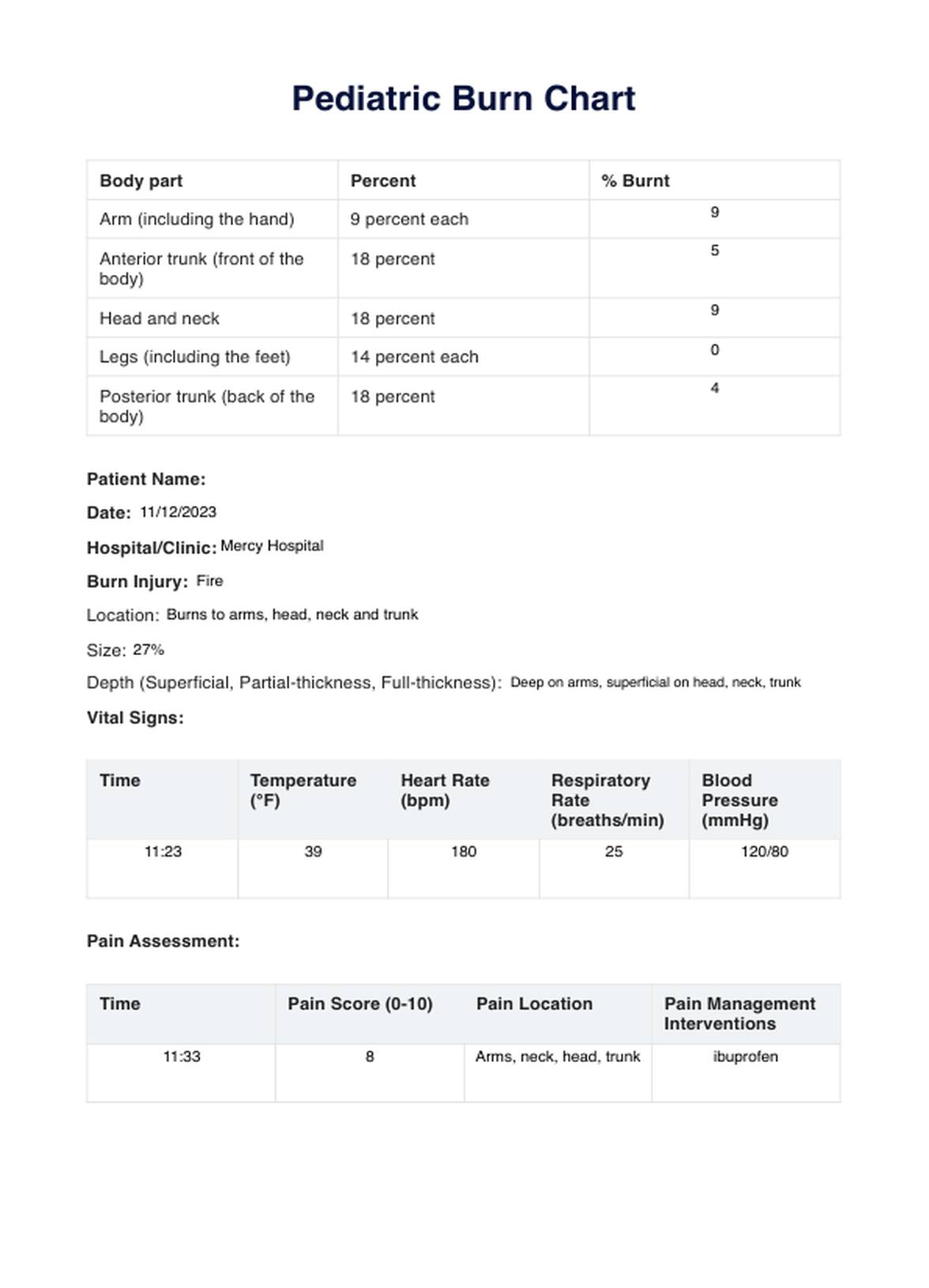 Optimise pediatric burn care with the Pediatric Burn Chart Template, a tool designed to streamline the assessment and management of burns in pediatric patients.