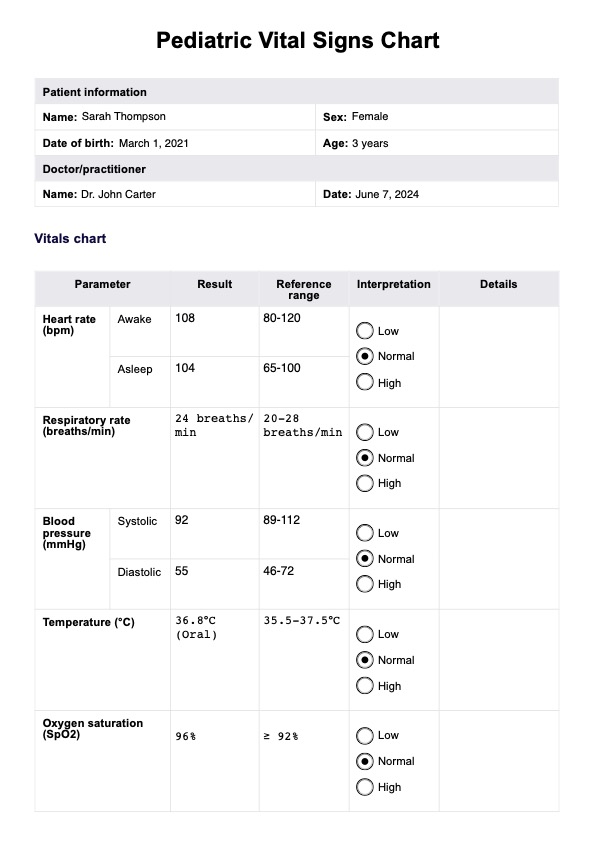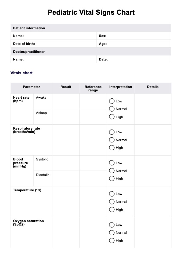 Access a free Pediatric Vital Signs Chart with Carepatron. Download this PDF for better clinical documentation.