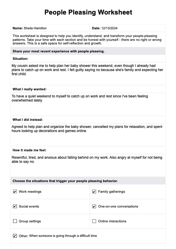 Access our People Pleasing Worksheet to help clients overcome people pleasing behaviors and establish healthy boundaries.
