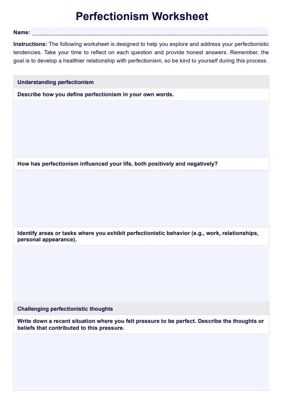 Help clients overcome perfectionism with our free Perfectionism Worksheet. Download a free PDF template and example now!