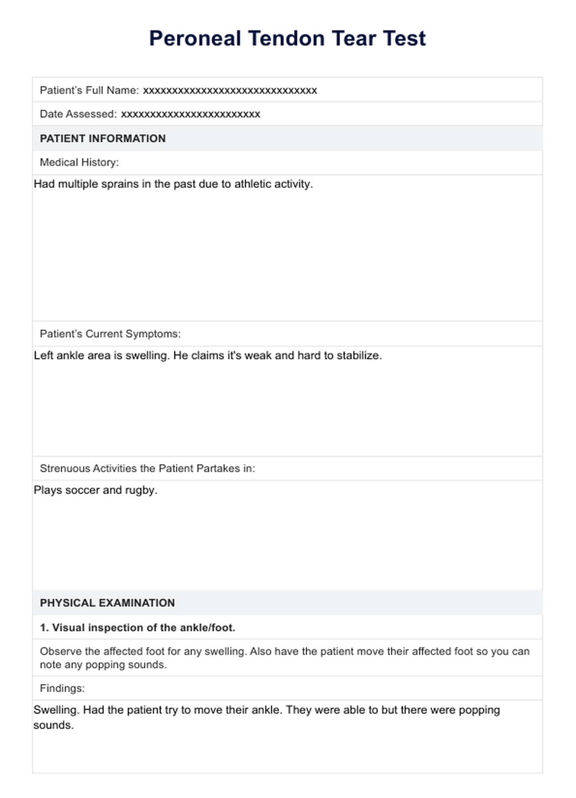 Learn about the Peroneal Tendon Tear Test and use our template to record results!