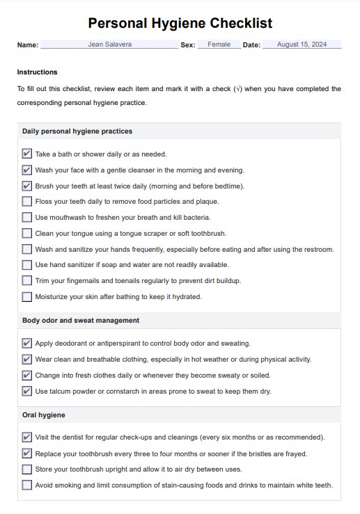 Personal Hygiene Checklist Template