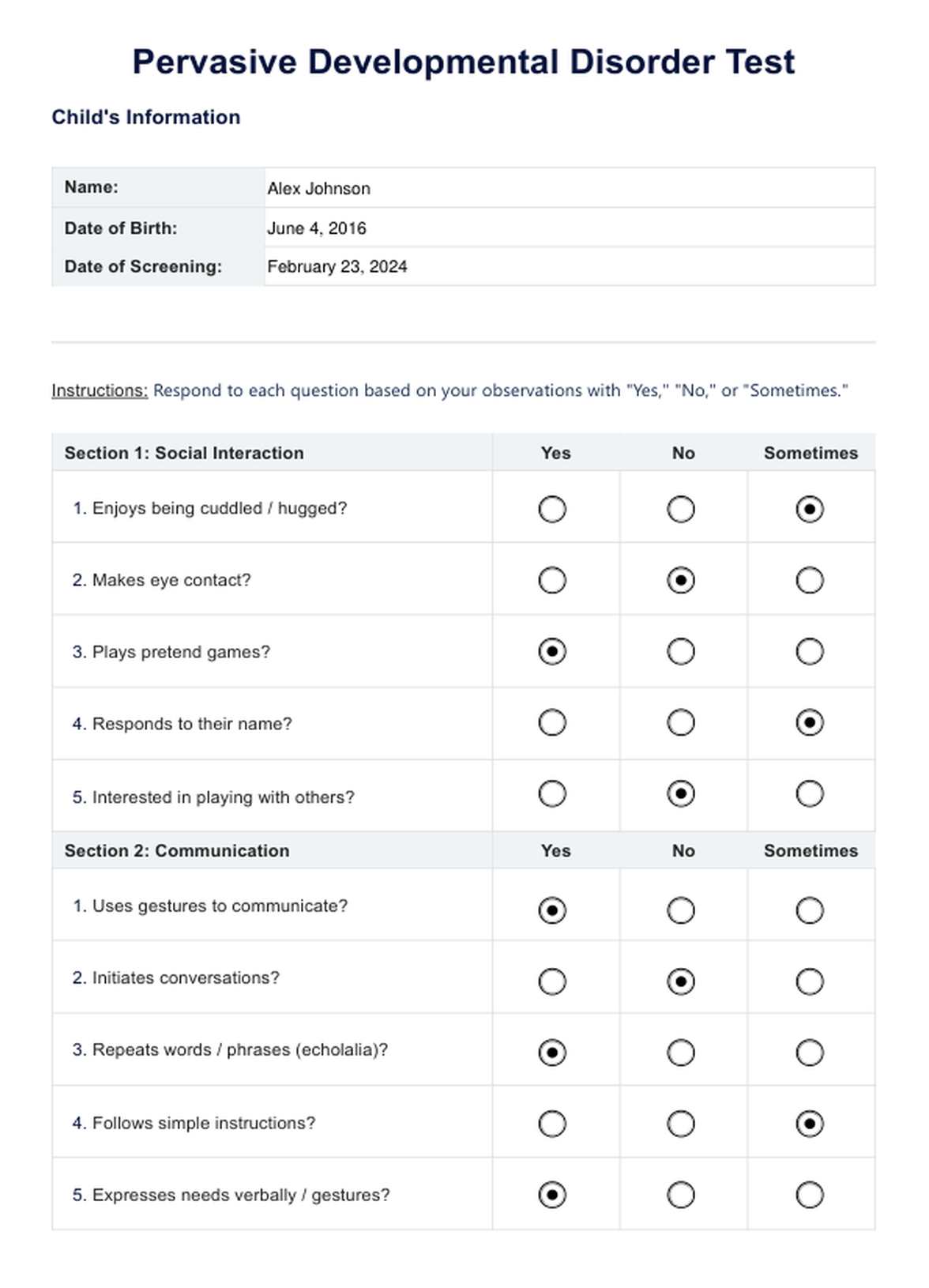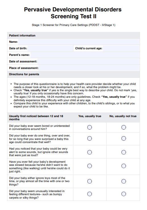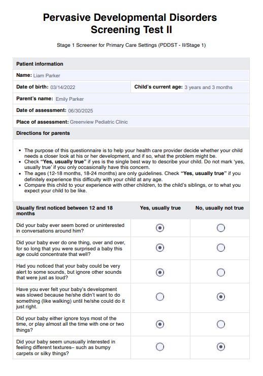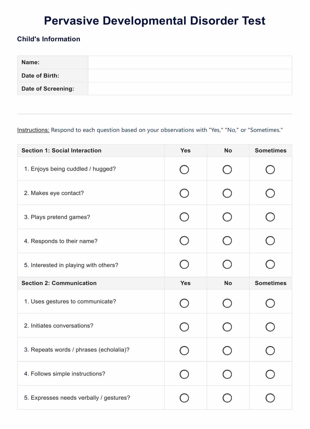 Explore early detection of PDD with our screening test, guiding further evaluation and tailored interventions for developmental support.