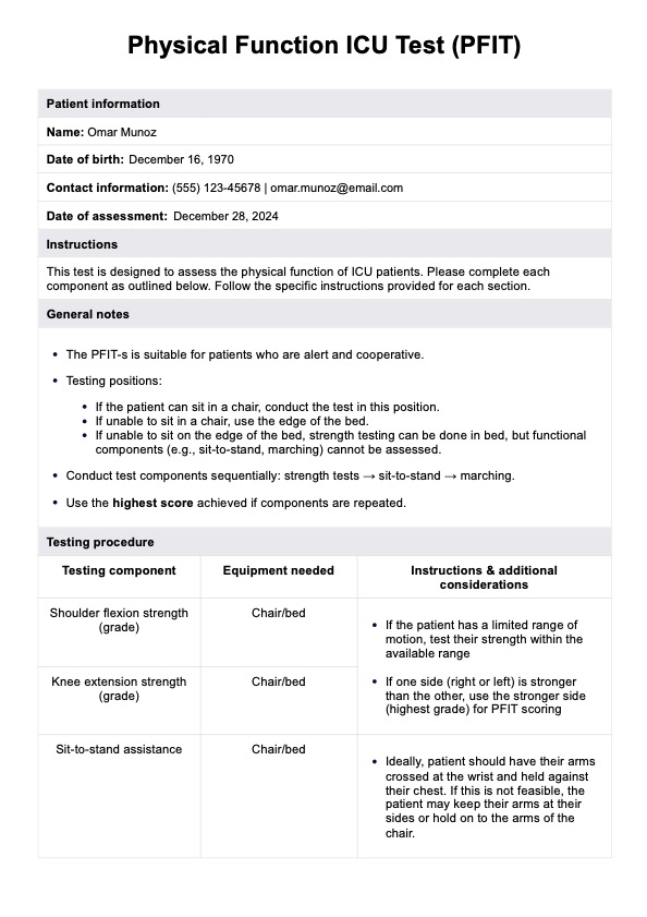 The PFIT outcome measure is a standardized assessment tool used to evaluate the physical function of critically ill patients, particularly in the intensive care unit (ICU). It measures strength, endurance, and task performance, helping clinicians track recovery progress and guide rehabilitation interventions.